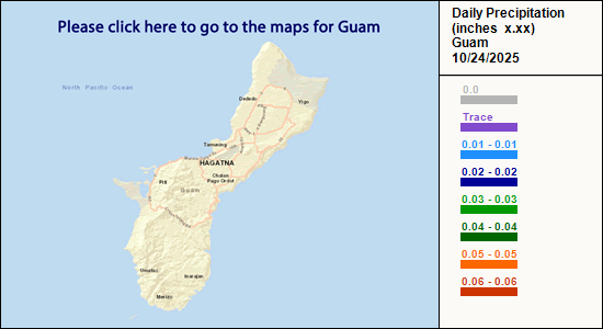 CoCoRaHS welcomes Guam to the CoCoRaHS Family! CoCoRaHS has expanded across the Pacific Ocean to the Island of Guam which is part of the Mariana Islands in the Western Pacific. Know someone in Guam who might like to participate in measuring precipitation? To sign up just go to join CoCoRaHS, then click on United States and pull up Guam from the state field when you register. To find out more please contact our Guam territorial coordinator, Bryan Hong. Bryan Hong Meteorologist National Weather Service, WFO Guam 3232 Hueneme Rd. Barrigada, GU 96913 671-472-0900 bryan.hong@noaa.gov
